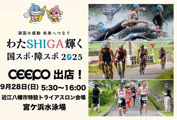 今週末9月27日(土)28日(日)のCEEPOイベント情報 九十九里トライアスロン出店(土)国スポ・障スポ トライアスロン滋賀(日)投稿者: ceepo2025年9月24日NEW 今週末9月27日(土)28日(日)のCEEPOイベント情報 ⚫︎9月27日(土) 九十九里トライアスロン出店❗️ 6:00- 8:30 選手受付会場 10:00-17:00 フィニッシュエリア ⚫︎9月28日(日) 国スポ・障スポ トライアスロン 滋賀 2025出店❗️ 選手の皆さん応援します。 頑張って下さい❗️