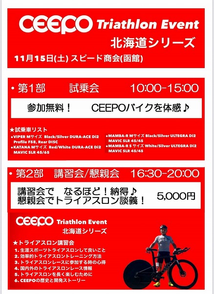 CEEPO試乗会・トライアスロン講習会・トライアスロン懇親会 in 北海道 函館&札幌