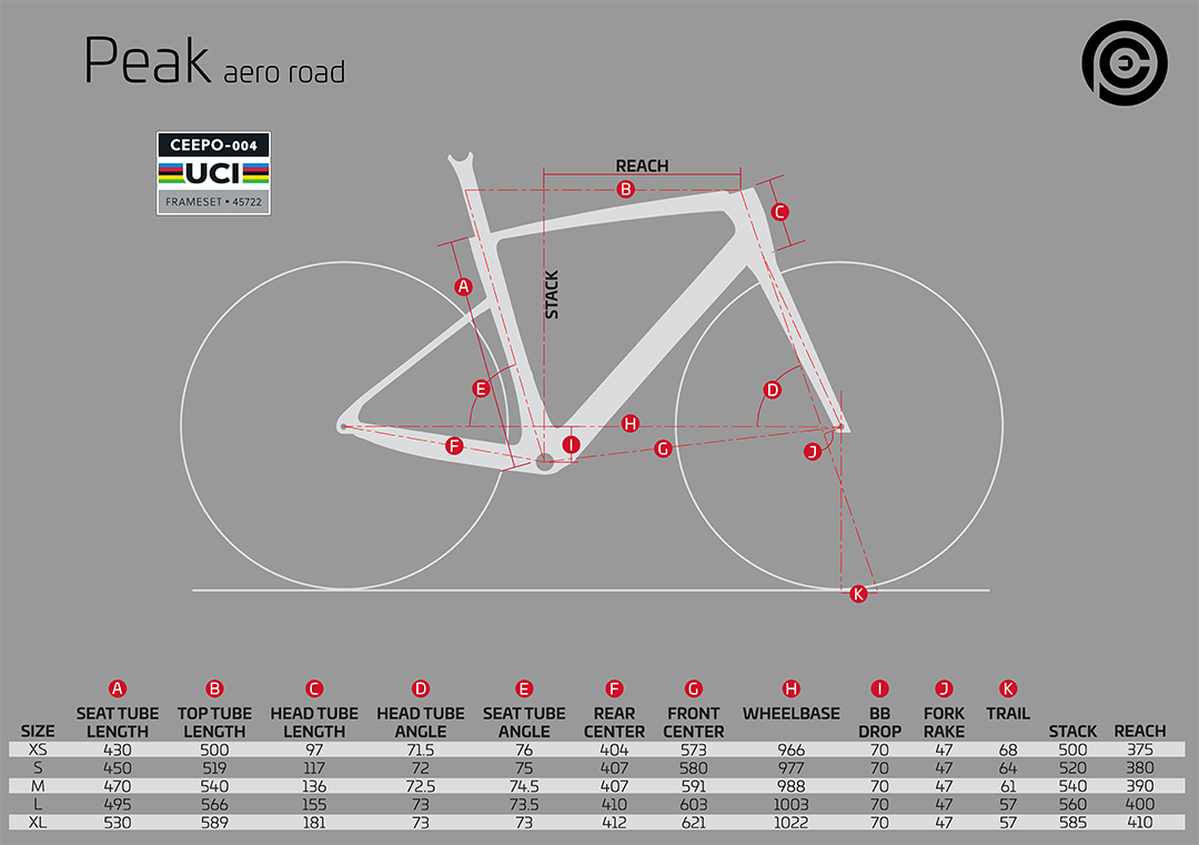 スーパーロードバイク PeakはCEEPOの世界戦略バイクとして素材にTORAY M40Xを使用し、最新のカーボンフレーム製法によって開発されました。