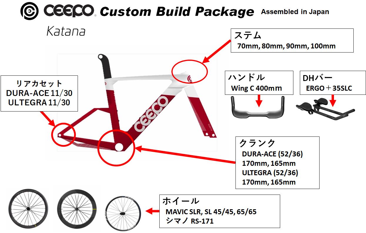 • KATANAは巡航性能と登坂性能の中間に位置づけされる機能で開発され、いろいろなタイプのコースに対応できるという理由でCEEPOのトライアスロンバイクのラインナップの中で一番人気のモデルです。