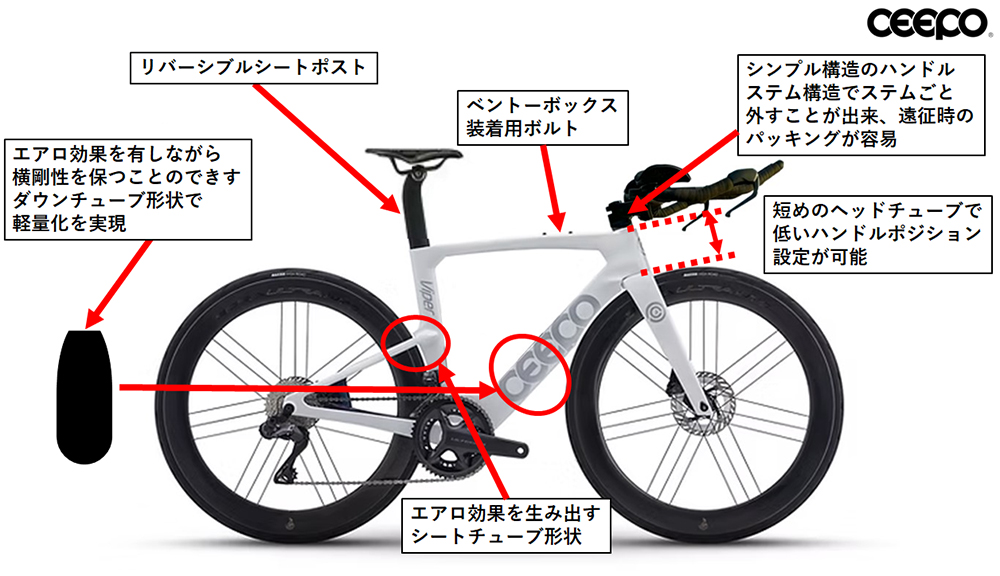 - 自転車の基本構造(6個の三角形)をベースにフレーム全体のエアロ効果を追求し、ディスクブレーキもカバーするデザインとしました。