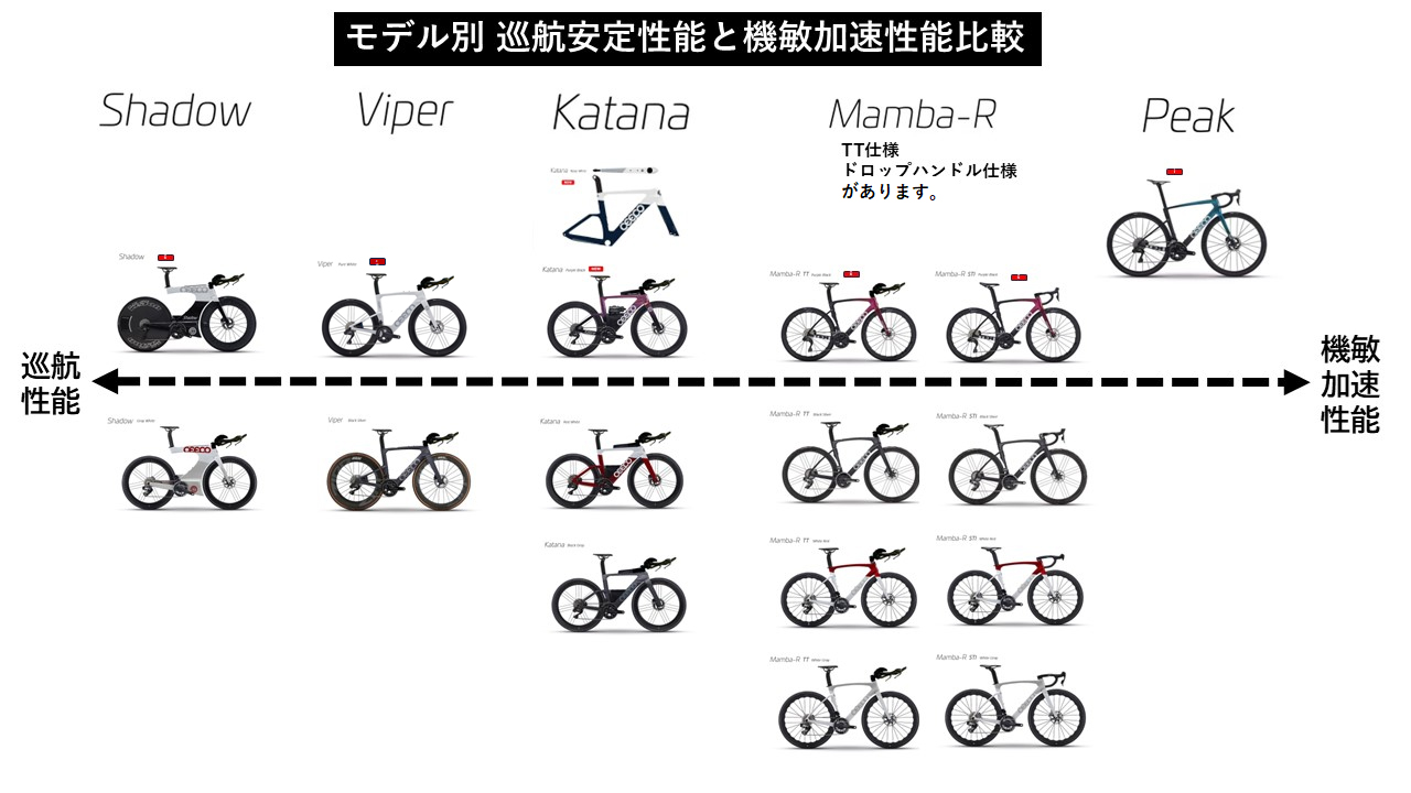 ⑤巡航性能と加速機敏性能の相反関係の中で異なるタイプのトライアスロンバイクを開発