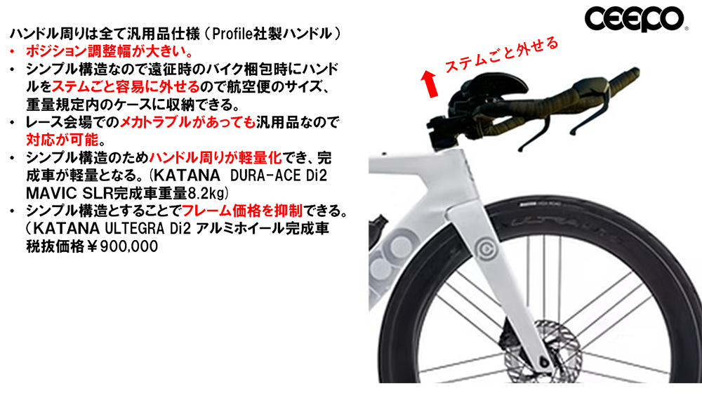 以降CEEPOは2013年から現在に至るまで「シンプル イズ ベスト」路線を貫き、トライアスロン競技特性を追求することでトライアスロンレースにとってベストのトライアスロンバイク開発を続けています。
